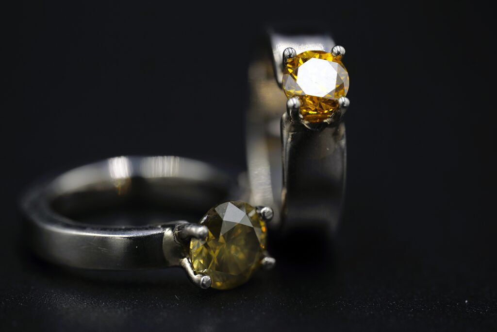Jeder Spannring wird in der Schweiz mit viel Handarbeit, individuell aus einem Edelmetall-Rohling auf den runden Diamanten angefertigt. Bevorzugt aus Weissgold, da die helle Farbe den farbigen Diamanten in voller Pracht erscheinen lässt. Natürlich ist es mit dem Konfigurator auch möglich, zwischen Gelb- oder Rosegold auszuwählen. Durch Öffnung am Ring lässt sich der grosse Diamant sehr tief einfassen und liegt somit optimal am Finger.