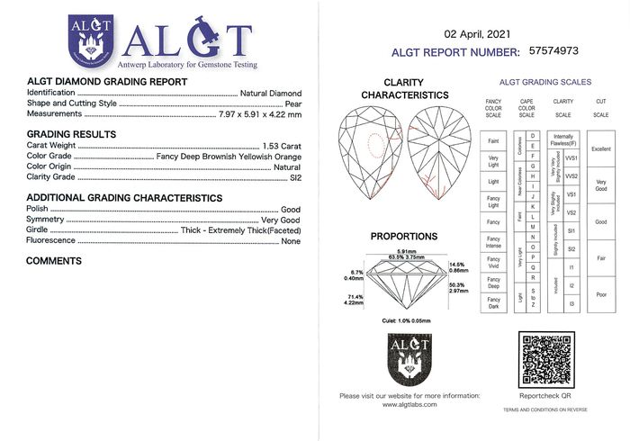 Naturdiamant: bräunlich-gelblich-Orange, 1.53 Karat Grosser "Pear Cut". Intensiver Glanz CHF 5'150.00 inkl. MWST Artikel-Nr. 1104 In den Warenkorb Karat: 1.53 Reinheit: SI2 Dimension: 7.97 x 5.91 x 4.22 mm Zertifikat: Download